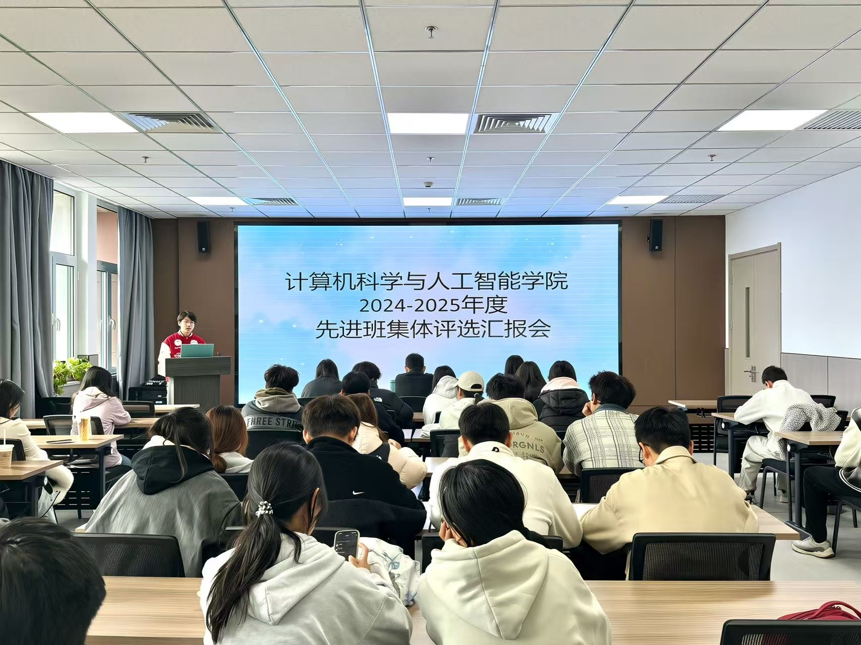 会上,各班班长围绕班级总貌、思想建设、学风建设、竞赛实践与文体活动等多个方面进行展示。他们借助详实的数据、鲜活的案例与生动的图文,系统梳理了过去一学年的建设成果,展现了各班团结进取、奋发有为的精神风貌。
