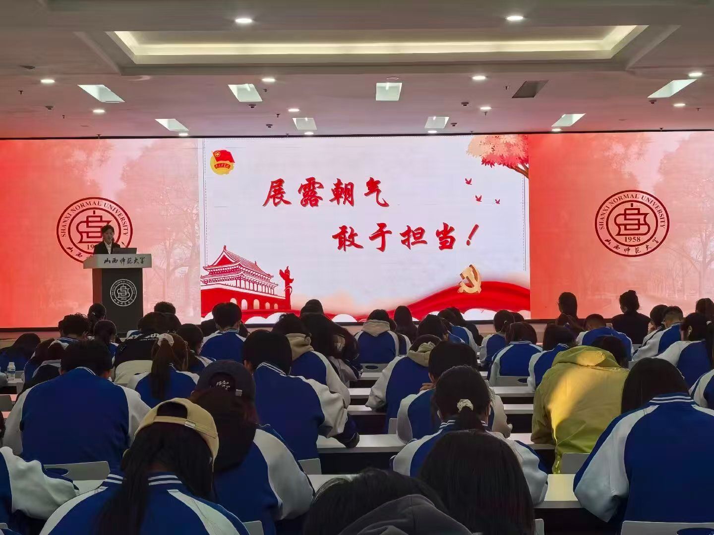 在经验分享环节,党员代表崔家恺结合自身向党组织靠拢的成长历程,分享了个人体会,鼓励同学们将个人理想追求融入党和国家事业之中;校级优秀团员代表赵泽凯讲述了自己的成长故事,为在场同学树立了学习榜样;新生代表任双爽表示,将强化理论武装,锤炼过硬本领,在逐梦路上不断超越自我、追求卓越。