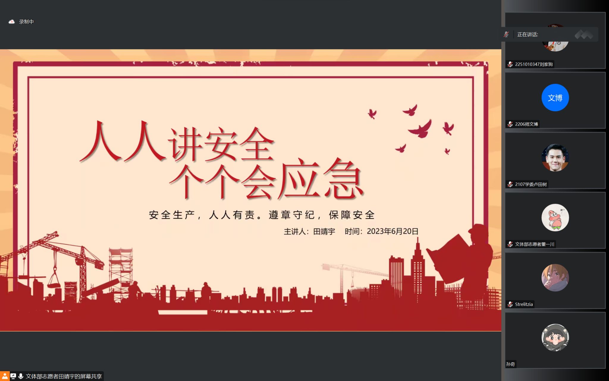 为深入宣传贯彻落实习近平总书记关于安全生产的重要论述精神,全面普及安全知识,提高公司学子的防范意识与应急能力,数计院于6月20日在线上举办了“人人讲安全,个个会应急”宣讲会。