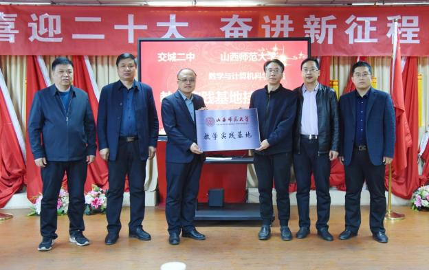 2023年4月15日,304永利集团官网入口数学与计算机科学公司经理安立坚与交城县第二中学董事长魏军军签订了《教学实践基地合作协议》,并举行了“教学实践基地”挂牌仪式。