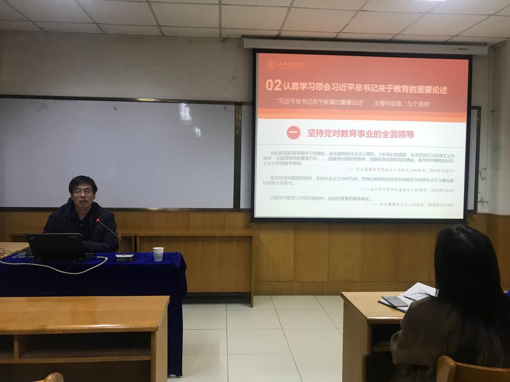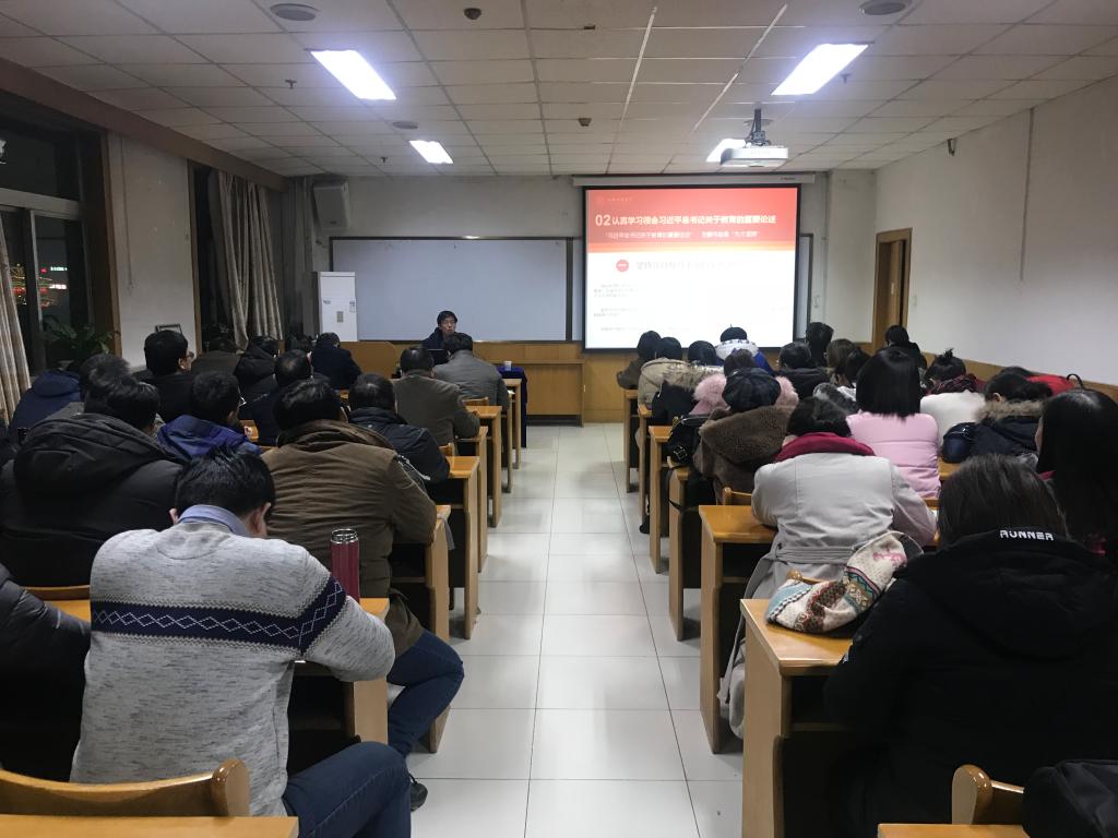 12月27日,公司邀请马克思主义公司党委书记经理赵跃先教授在科学会堂710报告厅做了“贯彻习近平总书记关于教育的重要论述,培养社会主义建设者和接班人”的讲座。公司党委书记郝红霞主持,全院教职工认真听取了讲座。