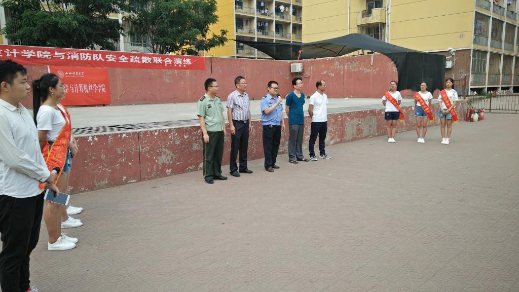 6月3日下午3时30分,在员工公寓新松小区,校保卫处副处长余晓川老师、校保卫处消防科科长张威老师、尧都区消防大队参谋郑景峰、数计公司副经理安立坚老师、团委书记陈立记老师、、以及数计公司全体本科生参加了安全疏散演练活动。活动之前,余处长等领导熟悉了社区环境,并指导安排了演练的具体事项及相关负责人员,规划了演练路线,说明了活动的注意事项。下午四点,演练的警哨声响起,同学们迅速从宿舍有序撤离到新松广场指定地点。全部同学安全集合后,郑参谋对同学们进行了专业的指导。之后,同学们在保卫处人员的引导下,手捂嘴、弯腰低姿地顺利完成了第二次安全疏散演练并收获颇丰。