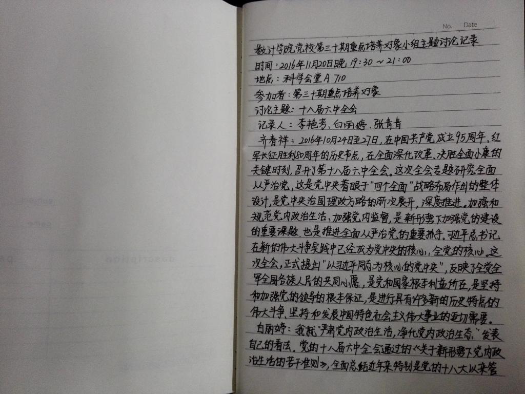 此次十八届六中全会精神专题学习讨论取得了良好的效果,不仅深刻领会了十八届六中全会精神,而且有效地指导了发展对象的思想道德修养,争做一名合格老员工党员。