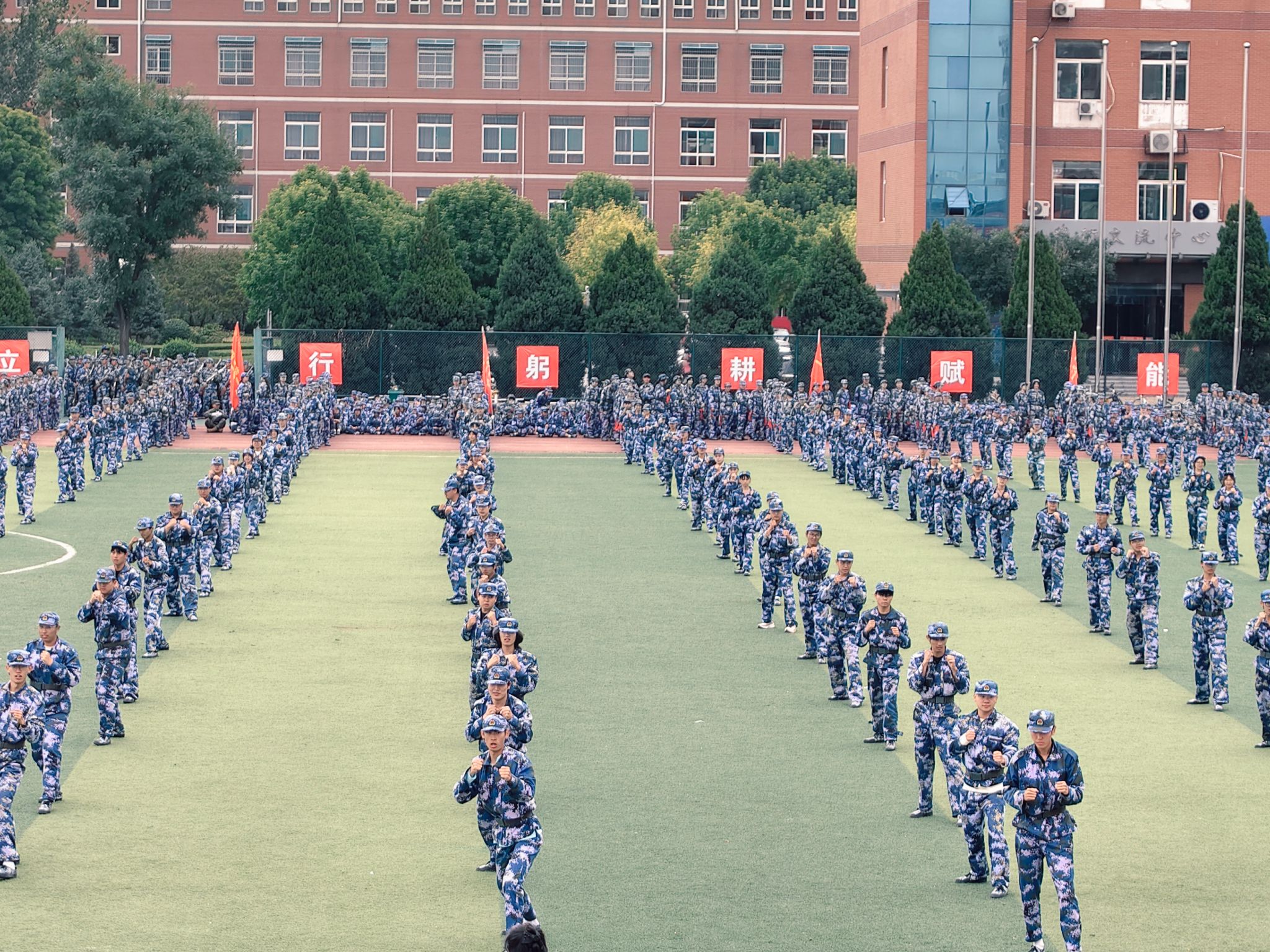 训练期间,阳光下挺拔的身姿,训练场上响亮的口号,见证着新生们在军训中的成长与蜕变。站定军姿时,烈日炙烤着操场,大家的站姿却稳如泰山,尽显青年学子的坚韧风采与责任担当;正步训练时,整齐有序的队列中是一张张神采飞扬的脸庞,干脆利落的动作和意气风发的神情,展现出大家蓬勃向上的精神风貌;练习匕首操和战术时,每一个招式都刚劲有力,每一声呐喊都充满力量,彰显着大家无畏的勇气与坚定的意志。